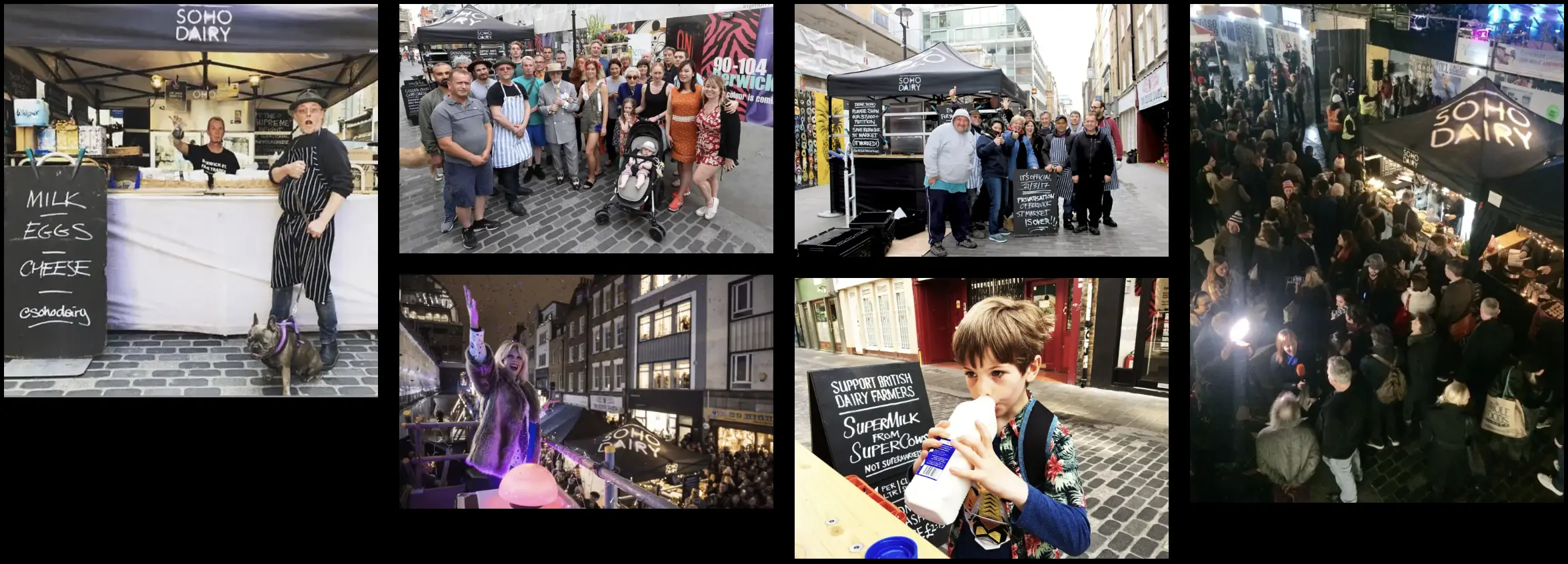 Soho Dairy has roots going back to the 17th century, when dairy cows grazed in the very same spot, on the pasture land of Kemp’s Field. When Berwick Street was laid out in 1687 by licence of James II, the grazing cows were moved into nearby parks. Later, as those parks became Royal Parks, the cows moved again, this time to roadside milk stalls. Over centuries since, with the West End no longer a place fit for cows, the area has been home to a vibrant mix of cultures — French Huguenots, Italians and Greek Cypriots, chefs, tradespeople, artists and artisans — with dairy being brought in from further afield. Today, Soho Dairy sees the return of a farm gate to Berwick Street.